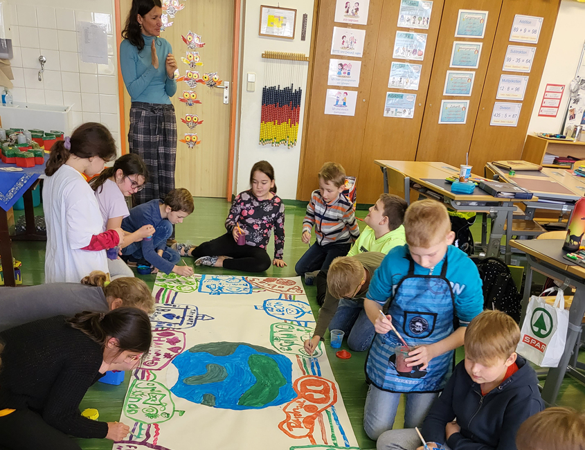 Die dritten und vierten Klassen beschäftigten sich im Rahmen dieses Projektes intensiv mit dem Element Wasser und wurden von der Diplompädagogin und Künstlerin Daniela Schatzko aus Gars am Kamp an die natürlichen Prozesse und Phänomene in Bezug auf Wasser praxisnah herangeführt. Die Kinder hatten die Möglichkeit, die Vielfalt und die erstaunlichen Eigenschaften von Wasser zu erleben und erfahren.