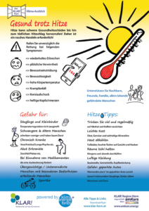 Inhalt: Der fortscheitende Klimawandel führt zukünftig unter anderem zu steigenden Temperaturen im Sommer sowie längeren und intensiveren Hitzewellen. Besonders betroffen sind dabei ältere und hochaltrige Menschen, aber auch Beschäftigte in der Pflege. Welche Risikofaktoren machen diese Personengruppen besonders vulnerabel gegenüber Hitze und wie können wir sie besser schützen? Im Rahmen des Vortrags werden diese Fragen beantwortet und konkrete Ideen zur praktischen Umsetzung gegeben. Unter anderem wird der vom LMU Klinikum entwickelte Hitzemaßnahmenplan als ein wichtiges Instrument der Hitzeprävention vorgestellt.